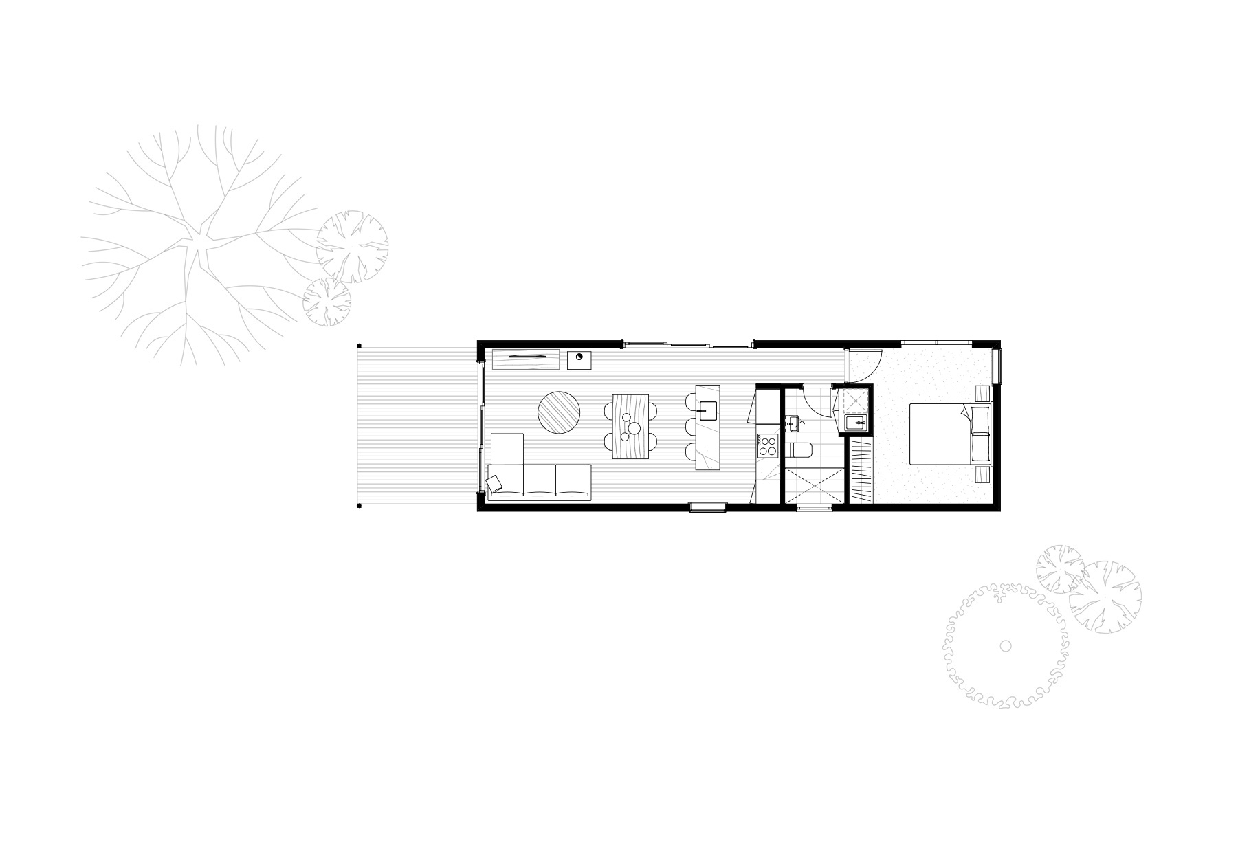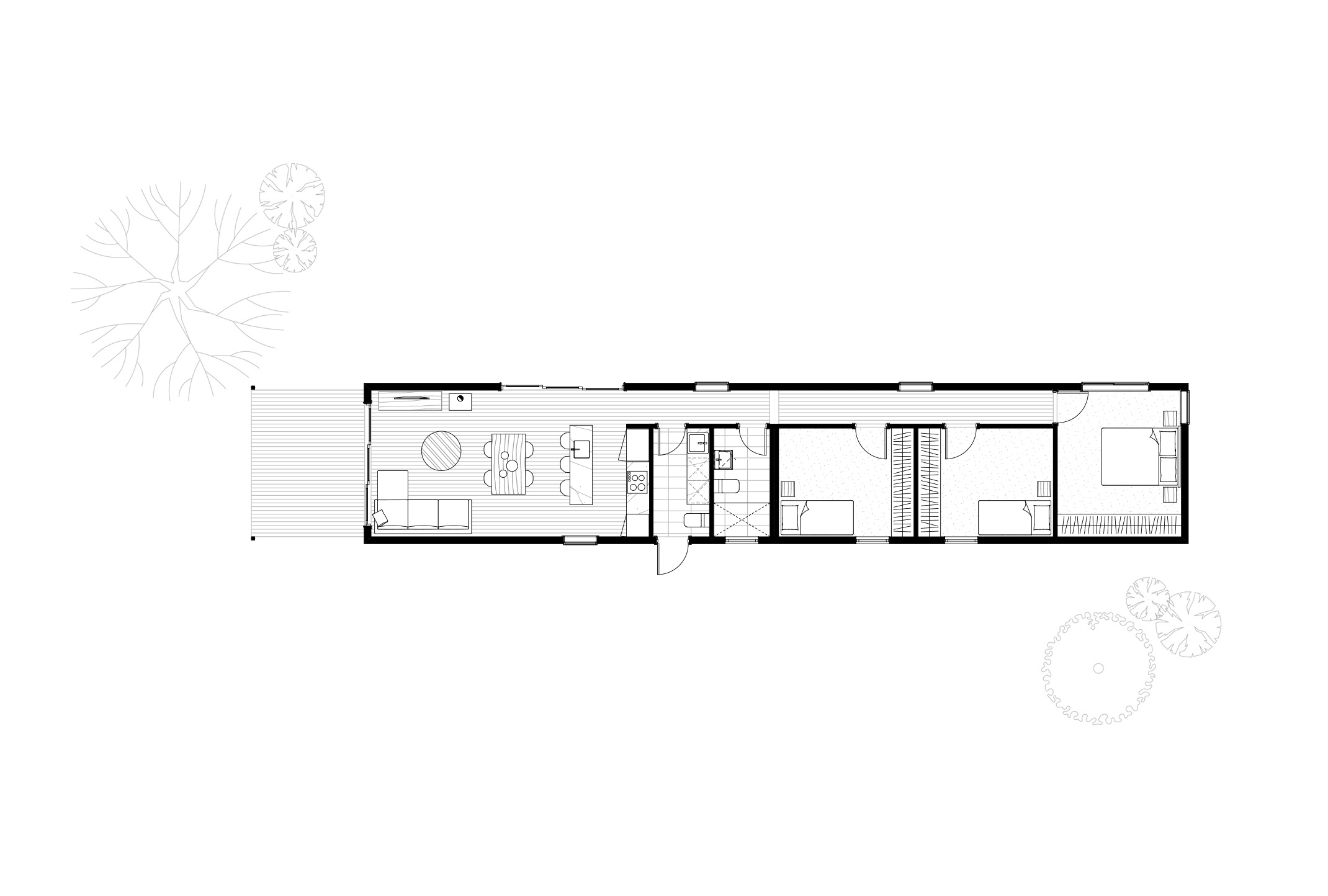 The living zone connects with the outdoor deck to create a harmonious indoor and outdoor living space that appears much larger than its footprint. Lennon is a timeless linear design that captures the essence of treading lightly with a considered floor plan, minimising unused space and maximising opportunities for the communal kitchen/living areas where spaciousness is required. A generous master bedroom for an indulgent retreat. Suited for a medium sized, family home or empty nesters.