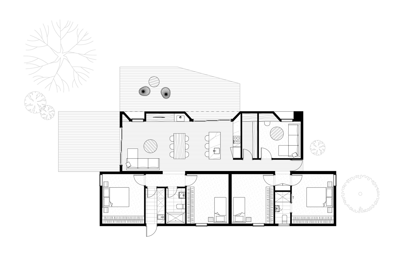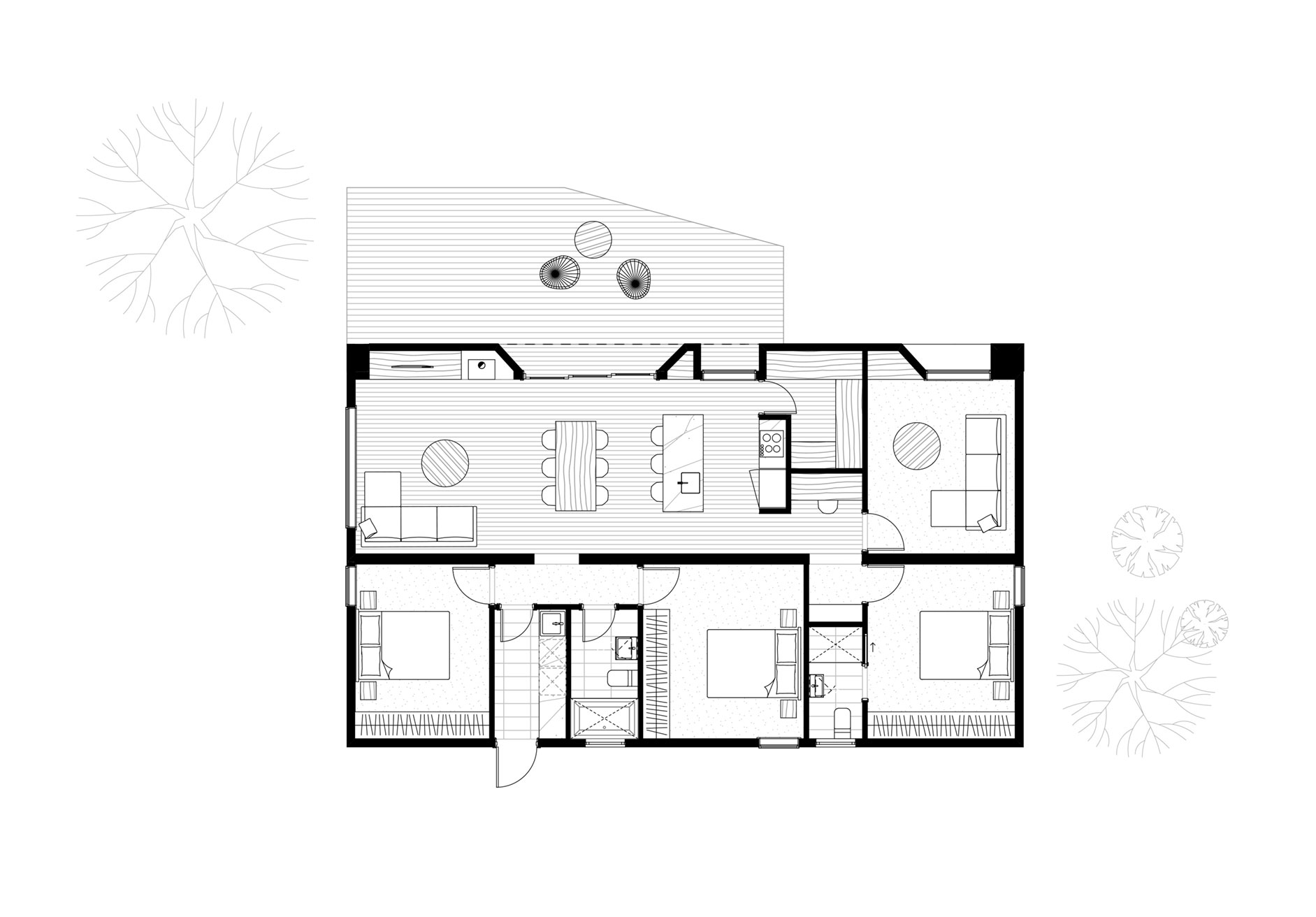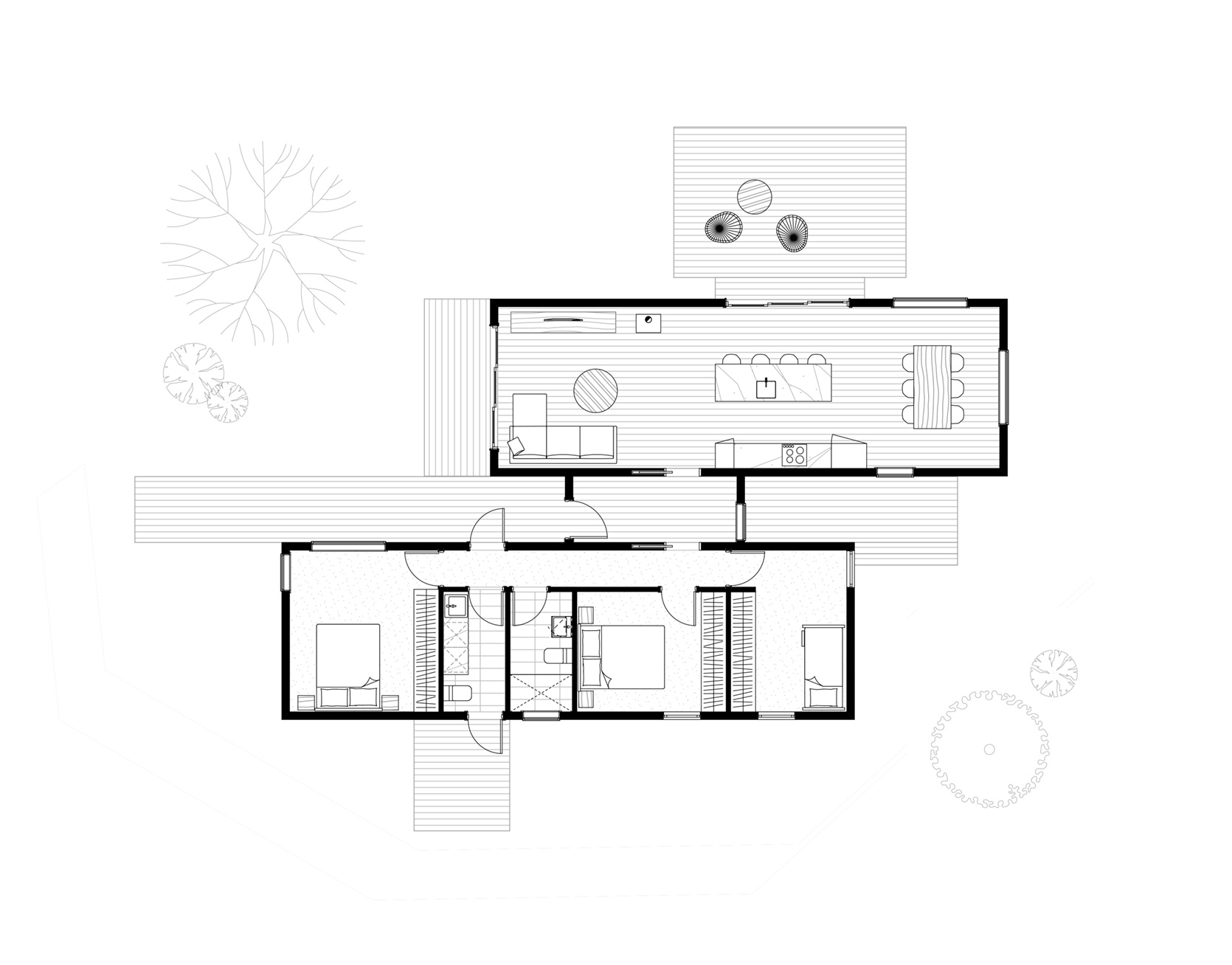 Sunday has been carefully crafted using Japanese design principles to maximise functional areas in the home, by eliminating unused, dead space. A spacious and clever kitchen/living arrangement with a central communal island bench encourages conversation and flow-through to an optional deck, connecting the occupants to life outside. Its design promotes the separation of living and sleeping areas, which optimises the efficient use of heating and cooling systems. This home suits most blocks and can be orientated to suit an east west or north south orientation, ensuring great indoor and outdoor living all year round.