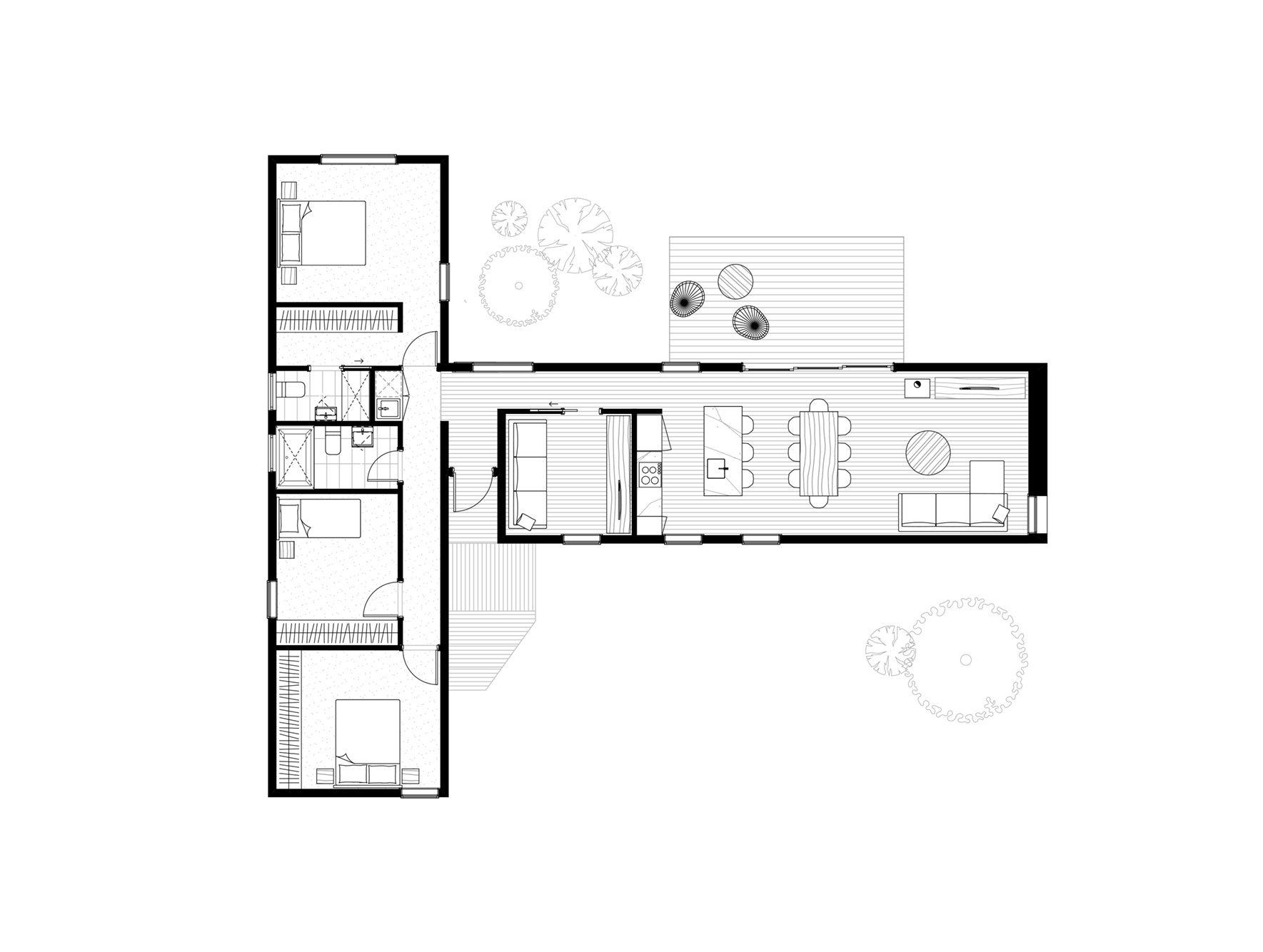 Easily broken up into separate living and bedroom wings, Juno is flexible enough to work across a range of sites whilst maximising solar gain and cross flow ventilation. The central connection has the ability to act as an air lock between the two modules, reducing heat loss or gain as you enter the front door and encourages efficient use of heating and cooling systems. Juno provides generous space for carefree living, making it well suited to large country and beach properties.